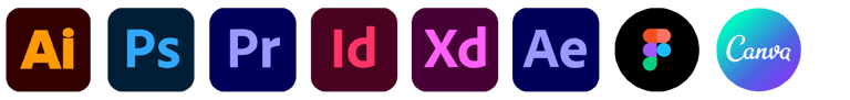 Adobe: Illustrator, Photoshop, Indesign, Premiere, After effects, Lightroom, Adobe XD.