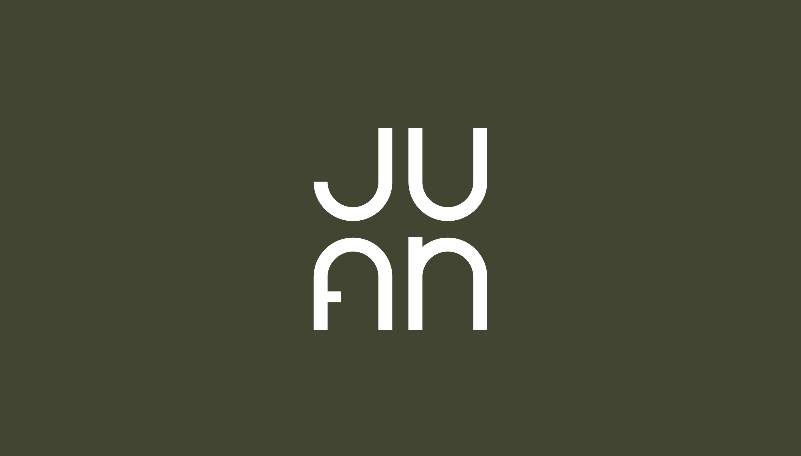 From this module, all the letters in the name “Juan” were developed, creating visual unity and rhythm throughout the composition. Beyond its geometric character, the arch also evokes the idea of entrance and shelter, reinforcing the brand’s connection to the notions of home and warmth.