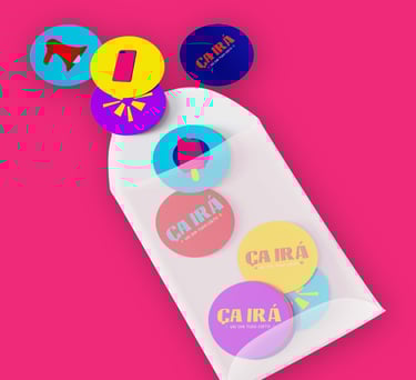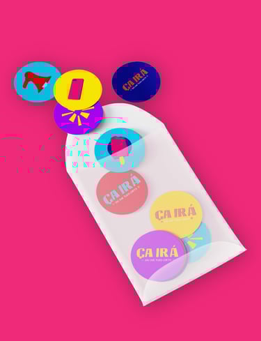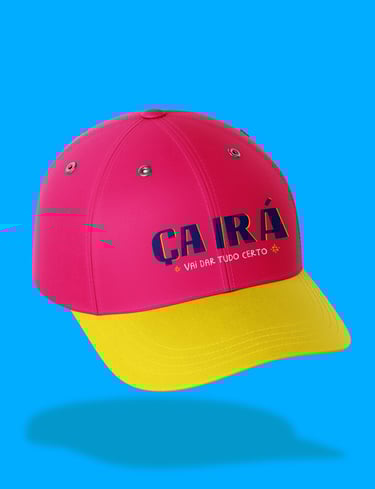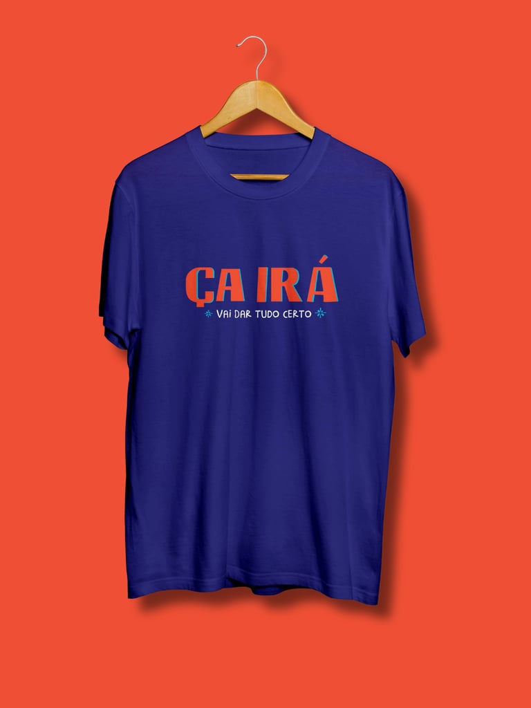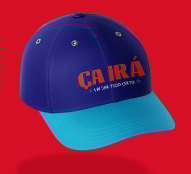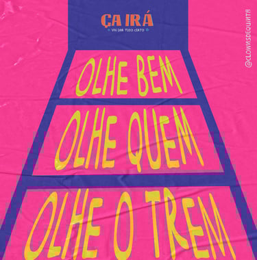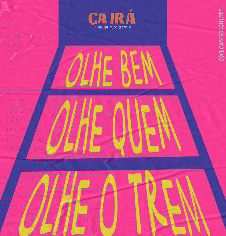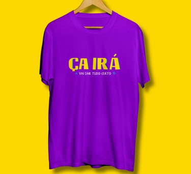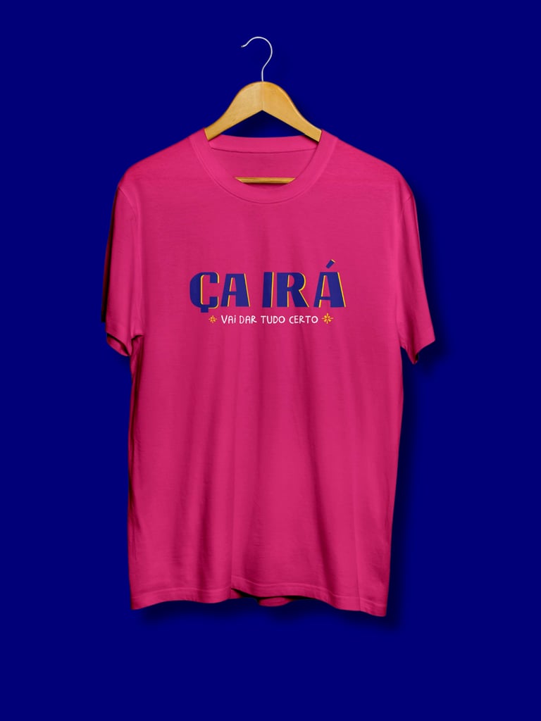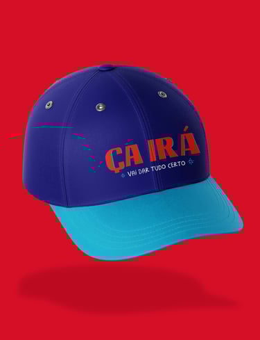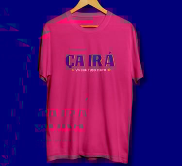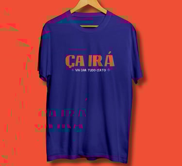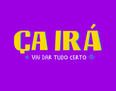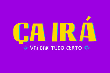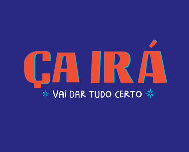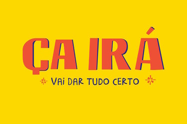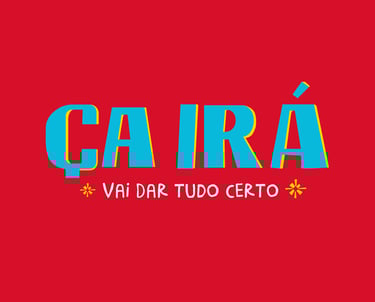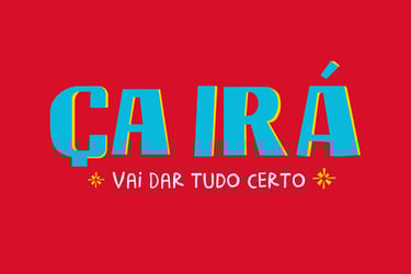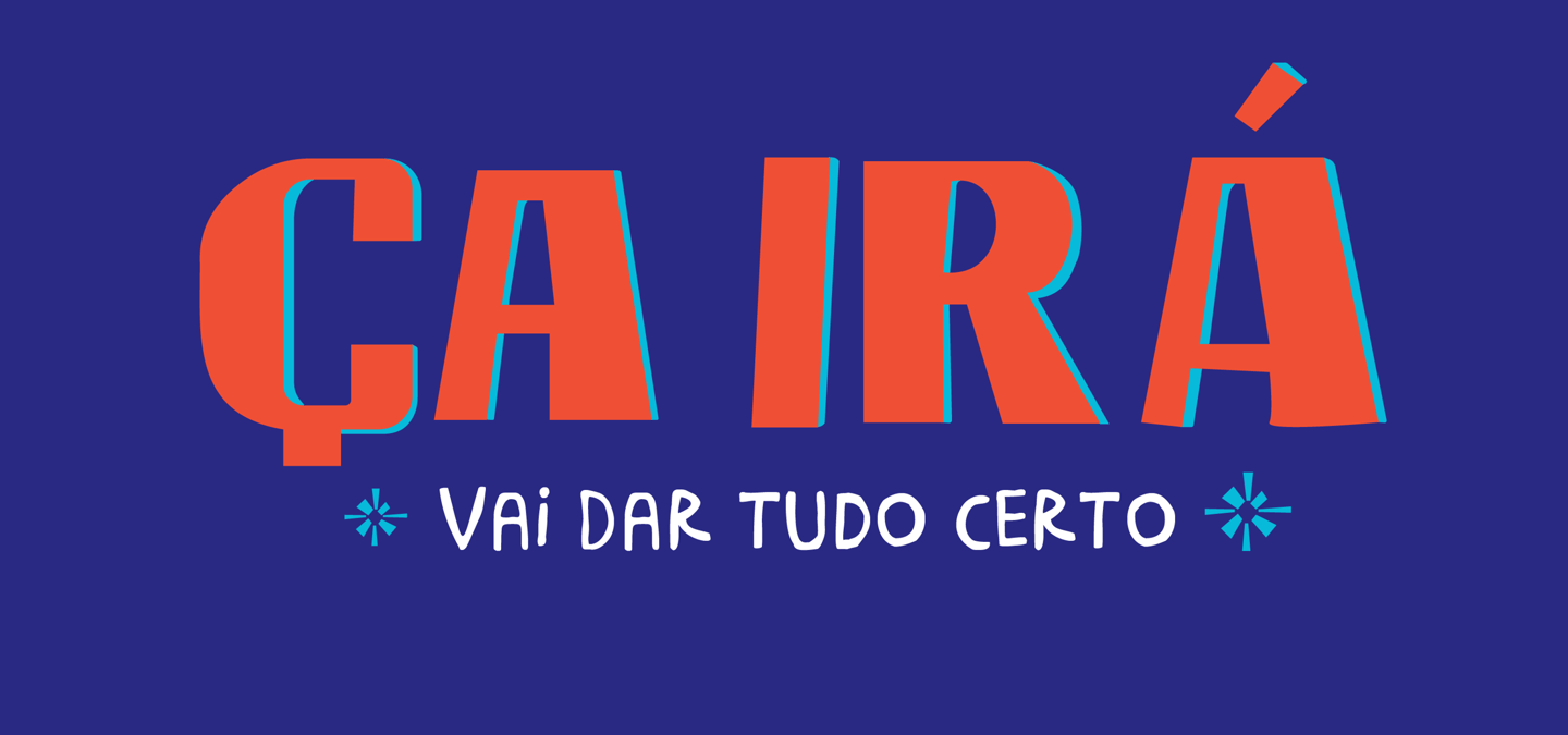 O lettering de “Ça Irá” foi construído a partir de letras encontradas em artefatos urbanos, enquanto o slogan utiliza a tipografia Brasileiro para reforçar um tom popular e familiar.