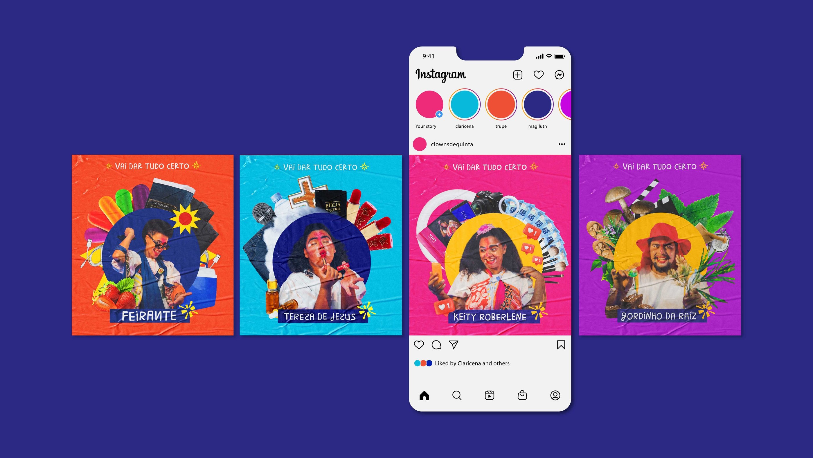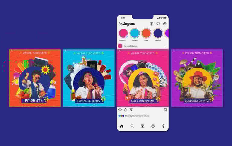 Os cartazes foram concebidos como peças de rua, adotando a estética do lambe-lambe, como uma linguagem visual própria desses ambientes. Colagens, sobreposição e desgaste gráfico simulam o acúmulo típico do espaço urbano, aproximando o material do território e reforçando o contexto social do espetáculo.
