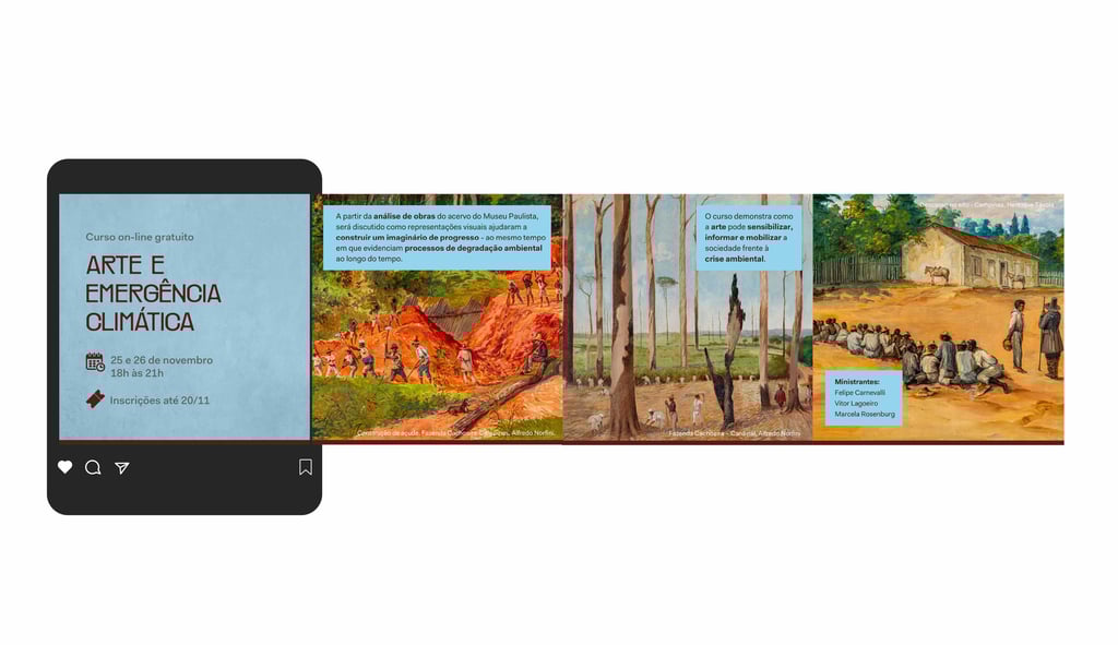 A partir do redesign da marca do museu, desenvolvemos um sistema visual para redes sociais capaz de acomodar conteúdos educativos, institucionais e curatoriais mantendo unidade e reconhecimento ao longo do tempo.