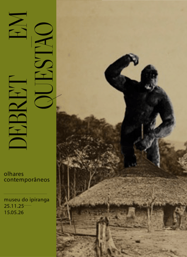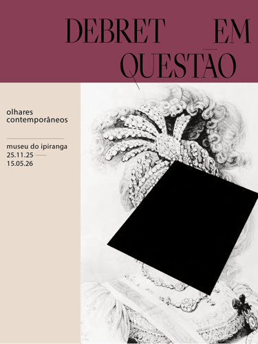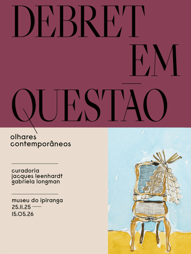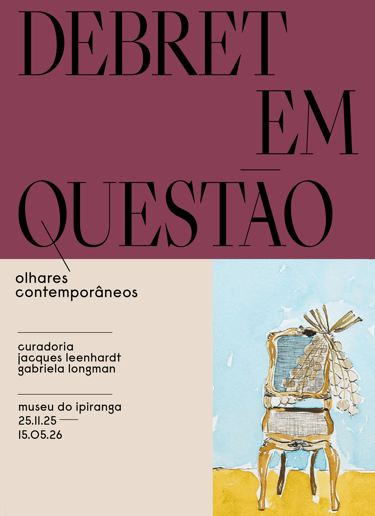 A tarja com as cores institucionais organiza a informação e cria ritmo visual sem competir com o acervo.