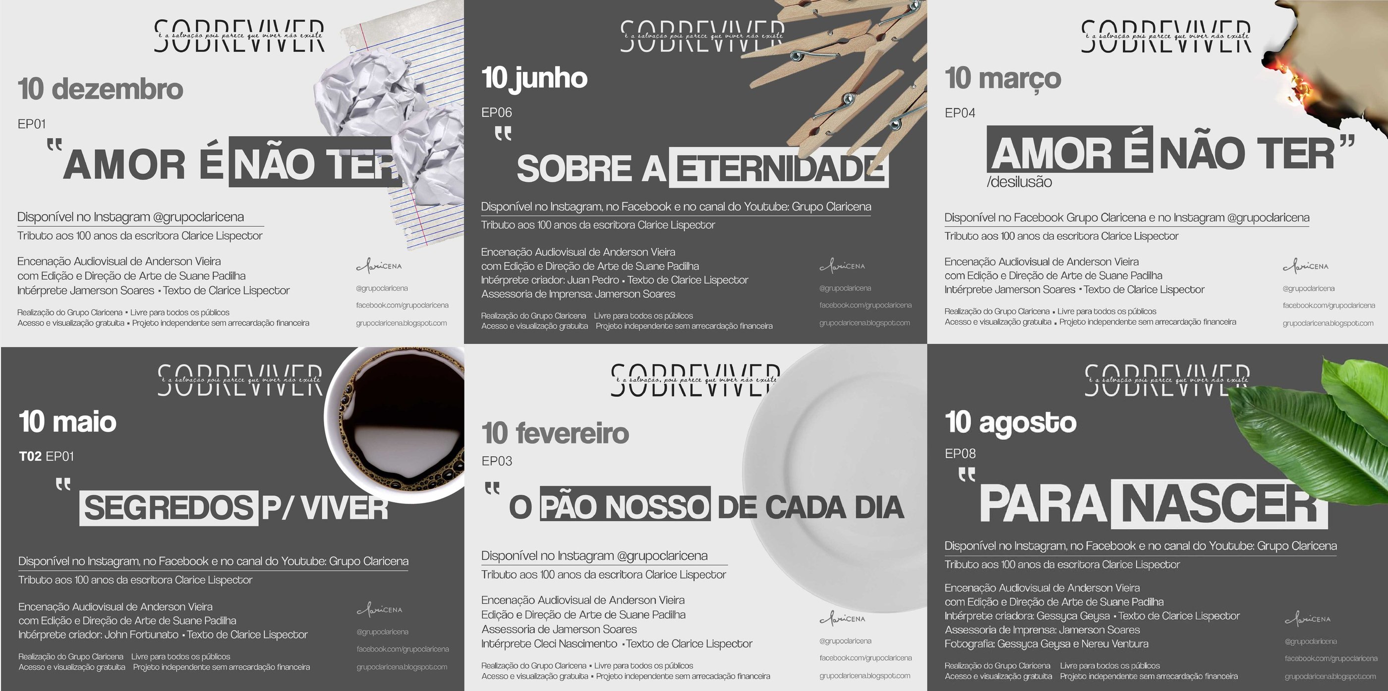 "Sobreviver é a salvação pois parece que viver não existe" is a web series produced virtually by the Claricena group, which explores the complexities of the human condition. With episodes that address moments of solitude and the subtleties of emotional experiences, the series provides a platform for deep reflections on life and existence.