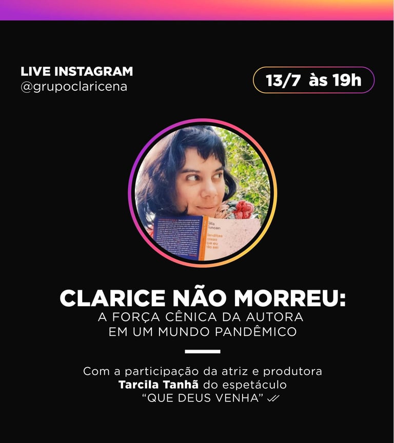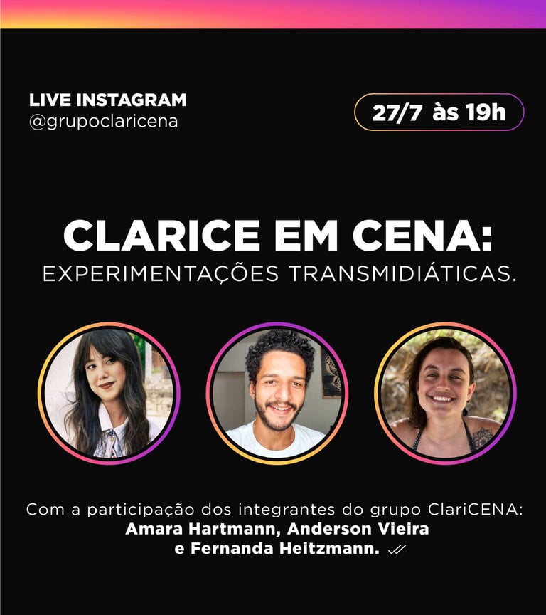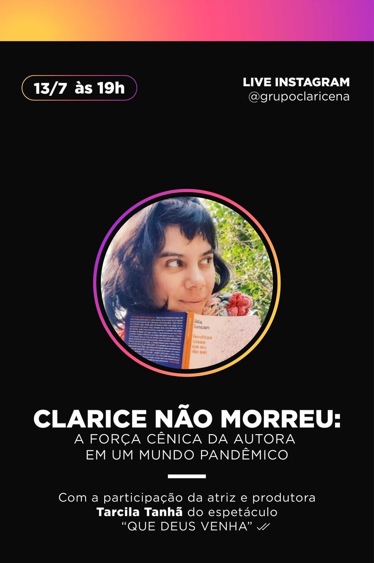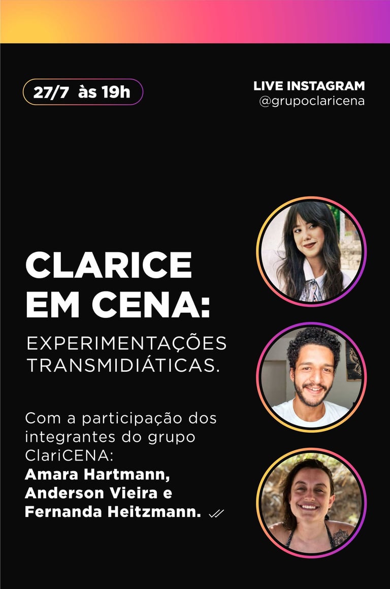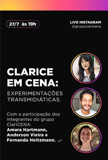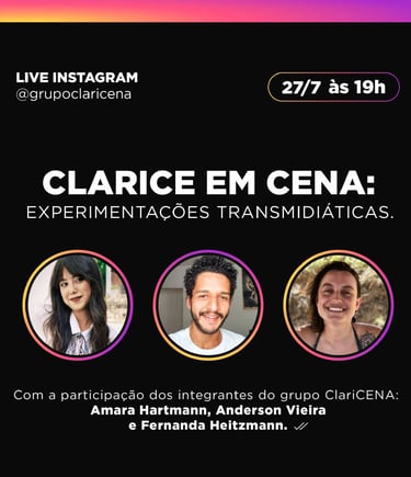 A Transmedia Experience with Clarice is a project that brings together a series of activities from the Claricena Group, aimed at exploring, creating, and materializing audiovisual performances inspired by the works of Clarice Lispector.