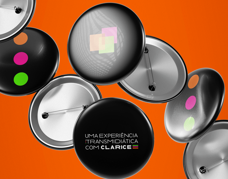 Cada cor foi cuidadosamente escolhida para comunicar o papel específico de cada ação: o rosa simboliza a série de lives no Instagram; o verde faz referência à encenação virtual do texto "Mulher nenhuma cabe dentro de um apartamento", realizada via WhatsApp; e o laranja é associado ao caderno de encenações e pesquisas, publicado ao final do ciclo. Juntas, essas cores e formas expressam a transição fluida entre as atividades e a imersão nas múltiplas camadas da obra de Clarice Lispector.